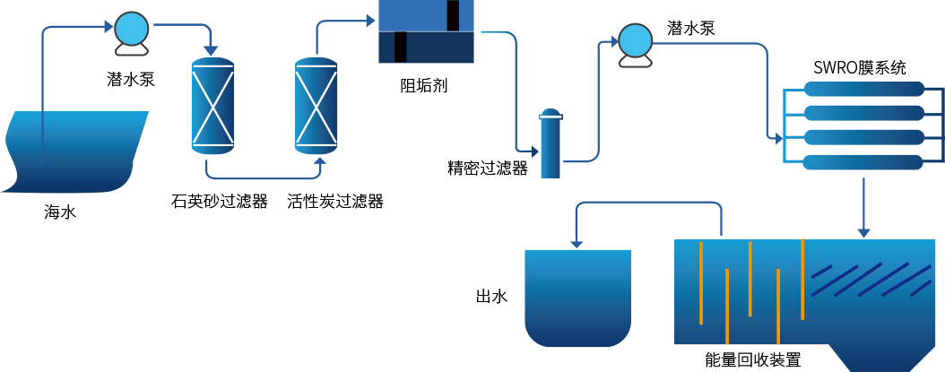 系統(tǒng)滿足客戶食宿飲用、洗浴循環(huán)用水及日常運(yùn)營用水,有效解決沿海城市淡水匱乏現(xiàn)狀,回用率高,減少水資源浪費(fèi)。有助于涉水行業(yè)滿足國家用水和排放標(biāo)準(zhǔn),降低環(huán)保壓力。