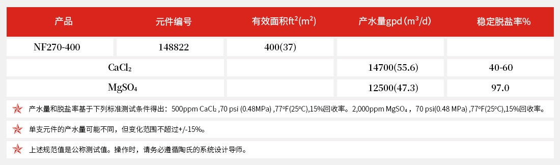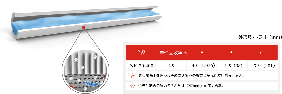 • 陶氏NF270-400是脫除地表水和地下水中的有機(jī)物并進(jìn)行部分軟化的理想膜元件,以達(dá)到特定要求的水質(zhì)硬度,保持口感,保護(hù)輸水管網(wǎng)。該元件膜面積大,所需凈驅(qū)動(dòng)力低,使得NF270-400低壓運(yùn)行就可去除水中有機(jī)化合物。