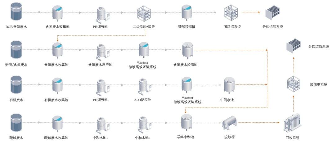 萊特萊德電子半導體廢水處理系統專注于實現八大類廢水零排放與資源化回收。該系統采用萊特萊德自主研發濃縮分離系統和多頻改性吸附系統,搭配高性能耐酸、耐堿膜等膜產品,不僅實現電子級化學品的高品質回收,還可對貴金屬進行資源化提取,回收產品純度高, 既可用于企業自身資源回用,也可作為原料出售,真正實現變廢為寶,推動半導體產業綠色循環發展。